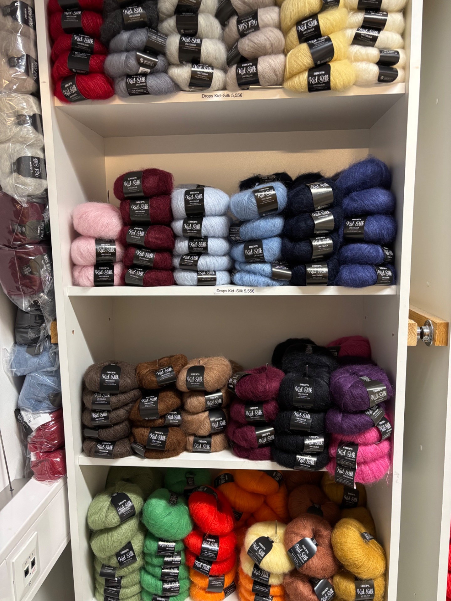 Lanka sopii hyvin pieniin neuleisiin kuten huiveihin, hartianlämmittimiin ja naisellisiin toppeihin. DROPS Kid-Silk -langan värikartassa on runsaasti värejä. Tämä lanka on kaikkein suosituin valinta, kun eri lankoja halutaan yhdistellä keskenään.