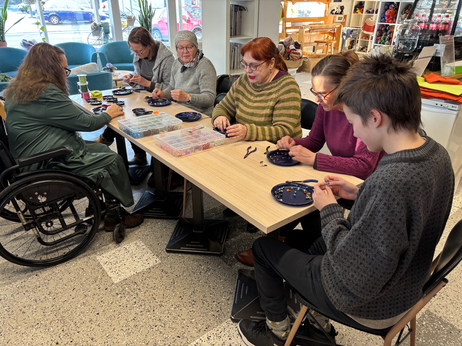 Vuosi lähenee loppuaan, mutta Käsityökuplassa tapahtuu vielä vaikka mitä kivaa. Tänään 15.11. asiakkaamme Sari pitää meille silmukkamerkkityöpajaa. Uunituore kuva on tästä iloisesta tapahtumasta.